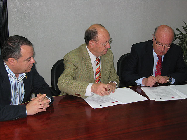El alcalde del Ayuntamiento de Alhama, Juan Romero Cánovas y el director territorial de Cajamurcia, Domingo Martínez, firmaban esta mañana un convenio en virtud del cual, la entidad bancaria va donar al Ayuntamiento un vehículo especialmente preparado para transportar a personas con discapacidad.