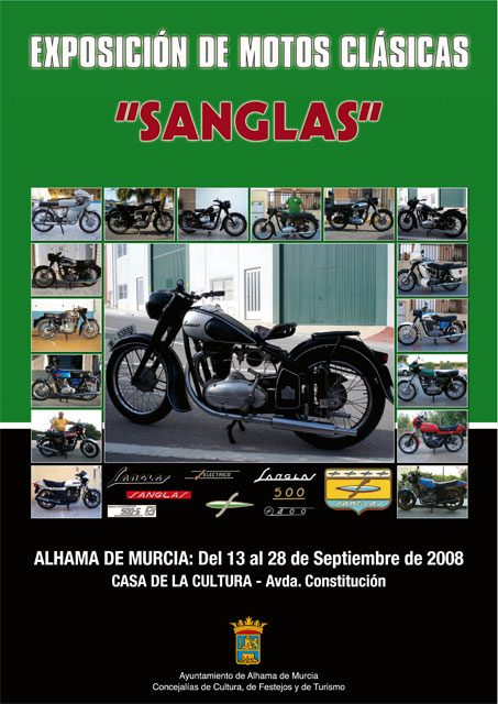 El Ayuntamiento de Alhama de Murcia a través de la Concejalía de Cultura, presenta el sábado 13 de septiembre a las 21:00 horas en la Casa de la Cultura la exposición de motos clásicas “Sanglas”.