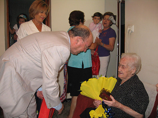 Ciento un años ha cumplido Mª Mercedes Hernández y, el alcalde del municipio, Juan Romero Cánovas, tal y como le gusta hacer con las personas del municipio que alcanzan los cien años, se trasladó hasta el domicilio de la vecina acompañado por la edil de Mayores, Soledad Tudela.