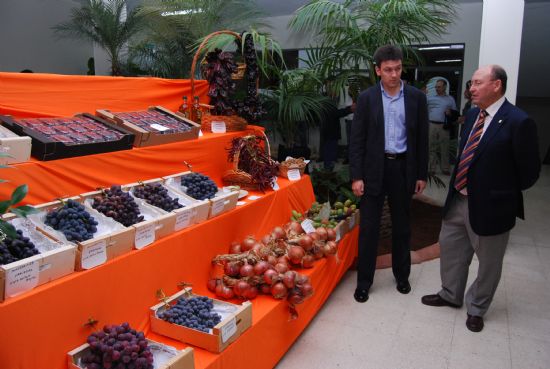 El alcalde de la localidad, Juan Romero Cánovas y el concejal de Agricultura y Agua, Alfonso Fernando Cerón Morales, inauguraron ayer la exposición de Uva de Mesa y Productos Agrarios del Bajo Guadalentín en la Casa de la Cultura.
