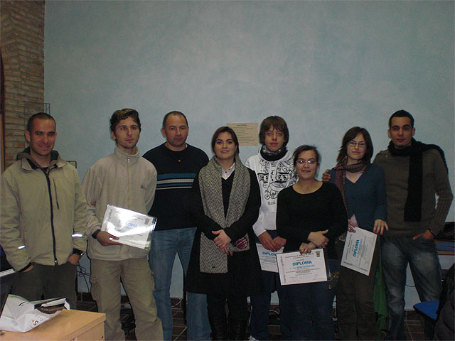 La concejal de Juventud, Mª Elena Marín, junto con el profesor que ha impartido el curso de photoshop, Salvador Olivares, hicieron entrega de los diplomas a los alumnos que han realizado este curso.