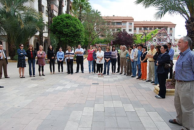 El Ayuntamiento de Alhama de Murcia ha realizado esta mañana, una concentración silenciosa en la puerta del consistorio en señal de repulsa y condena por el asesinato de la última víctima de la violencia de género, una vecina del barrio murciano de Santiago el Mayor de 68 años de edad.