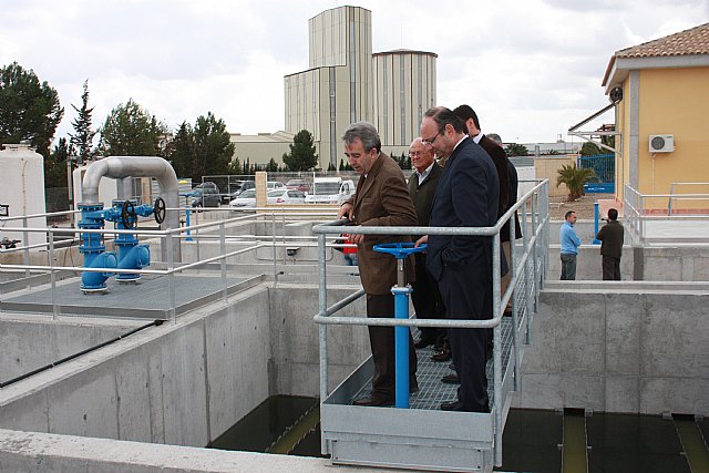 El consejero de Agricultura y Agua, Antonio Cerdá, y el alcalde de Alhama de Murcia, José Espadas, inauguraron hoy la ampliación de la depuradora del municipio que aumentará en un 50 por ciento su capacidad de tratamiento, pasando de 5.400 metros cúbicos al día a 7.900.