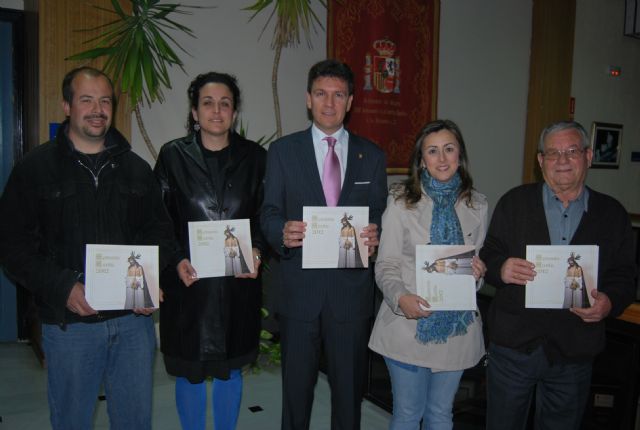 El alcalde de Alhama, Alfonso Fernando Cerón; la presidenta de la Junta de Cofradías y Hermandades, Encarna Martínez; la concejala de Cultura y Patrimonio, Carmen María Rodríguez y Miguel Ángel Redondo, coordinador de la revista, así como Antonio Núñez, también de la Junta de Cofradías, mostraban la revista cuya portada este año, la ocupa una imagen del El Cristo de la Caña, de la Cofradía de San Juan Evangelista quien este año ha diseñado el cartel.