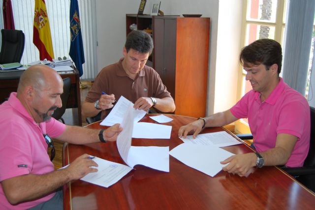 El alcalde de Alhama de Murcia, Alfonso Fernando Cerón Morales, firmaba ayer un convenio con el presidente de la Entidad Urbanística del Parque Industrial de Las Salinas, Justo Palomares, a fin de ceder a ésta entidad la gestión de la ciudad del transporte.