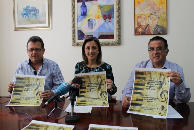 La edil Carmen María Rodríguez, junto con el director de la Agrupación Musical de Alhama, José Antonio Ayala, y su presidente José Antonio Gómez, han presentado el concierto que la Agrupación Musical de Alhama dará el próximo domingo 19 de mayo a las 12:00 horas en el auditorio y centro de congresos Víctor Villegas, junto con la Banda Villa de Bullas. El precio de la localidad es de 3 € y se puede adquirir tanto en la Escuela de Música como en el mismo auditorio.