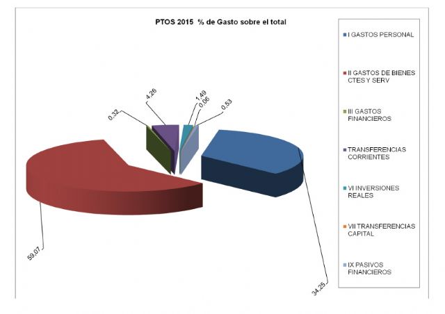 Un resumen del gasto refleja, parámetros muy similares al pasado ejercicio, ya que en 2015 se destinan más de 7 millones de euros a personal, 12 millones de euros a gastos de funcionamiento de servicios, 178 mil € a gastos financieros que supone un amento de más de 50.000 €, 889.000 € en transferencias corrientes a entidades, asociaciones y clubes, y sólo 311.887 € presupuestados para inversiones, 66.000 menos.