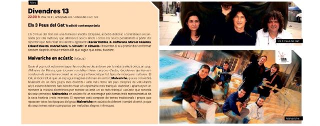 El grupo de Alhama de Murcia Malvariche, el próximo viernes 13 de Marzo, presentara su espectáculo "en acústico" en el escenario de Centro Artesá Tradicionarius, en el bonito Barrio de Gracia de Barcelona, dentro de la programación de este año del XXVIII Festival Folk Internacional Tradicionarius 2015.