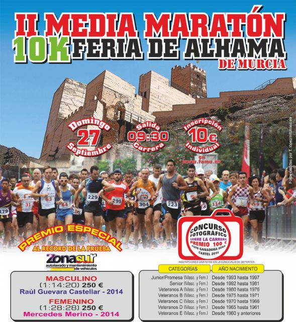 Por segundo año, la Feria de Alhama de Murcia contará entre sus acontecimientos más importantes la disputa de una prueba que dejó un gran sabor de boca en su edición inaugural. Será el próximo domingo 27 de septiembre cuando se dispute la II Media Maratón y 10K Feria de Alhama, con salida y meta en la Plaza de la Constitución a partir de las 9:30h.
