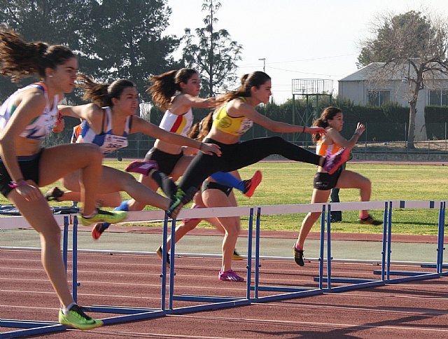 En féminas, la atleta del UCAM Cartagena Laura Rodríguez era la más rápida en 60 (8.04) y 200m.l. (26.30) así como Yolanda Pérez, del Juventud Atlética Elche, en 400 (59.28) y 60m. vallas 0,84 (9.51) y Pino García, del C.A. Murcia Tovarsport, en 800 (2:20.25), ganando en 1.500 la atleta del UCAM Cartagena Pilar Duarte (5:06.35). Lucía Sánchez, de la Sociedad Atlética Alcantarilla, era la más veloz en 60m. vallas 0,762 (9.81).