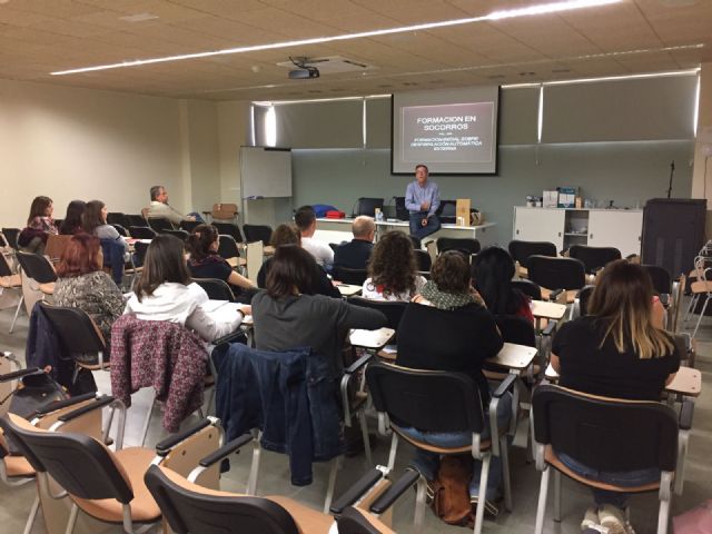 La primera de estas formaciones (https://goo.gl/Rh9EQT) comenzó el pasado mes de marzo y contó con la presencia de conserjes, monitores deportivos y agentes de la Policía Local. Después hubo un segundo turno para maestros de colegios y escuelas infantiles, profesores de los institutos y personal de centros deportivos.