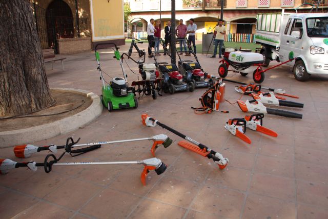 La concejalía de Infraestructuras y Servicios Públicos del Ayuntamiento, a través del área de Parques y Jardines, ha presentado hoy la nueva maquinaria y vehículos eléctricos con los que la empresa STV, responsable del mantenimiento de estos espacios, va a realizar su trabajo.