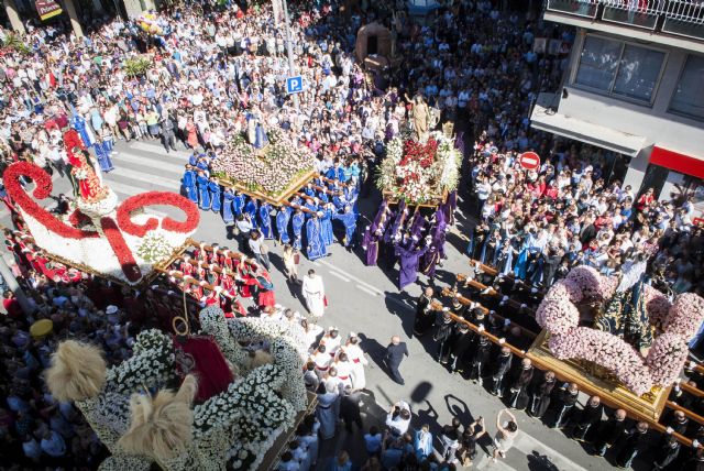 A las 11:00 asistirá al Encuentro de Domingo de Resurrección, el momento más espectacular y alegre de la Semana Santa de Alhama, sin parangón en ninguna otra localidad de la Región. Un acto que dará inicio a las 10:00 h con la procesión de las imágenes titulares de las cofradías, portadas a hombros y con unos adornos de flores descomunales que desafían a la gravedad, acompañadas de sus bandas de música desde distintos itinerarios que confluyen en el centro de la ciudad.