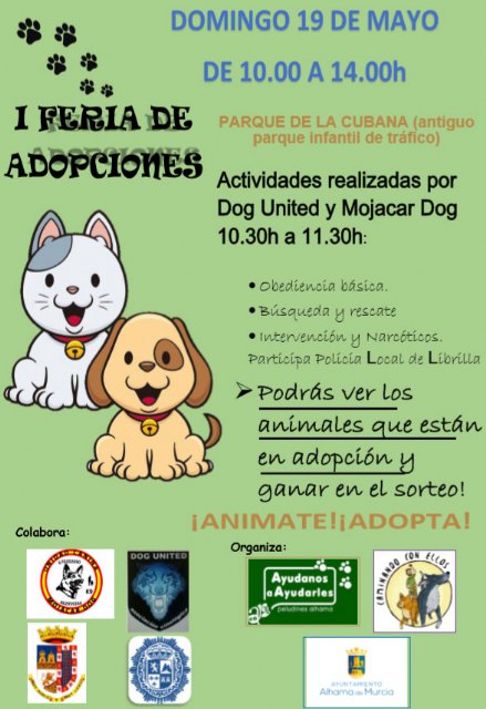 La feria tiene como objetivo acercar alguna de las mascotas que han sido recogidas en el municipio de Alhama de Murcia por el servicio de recogida de animales y se encuentran en la protectora Caminando por Ellos en Torre Pacheco, ademas de los animales en adopción de Peludines Alhama.