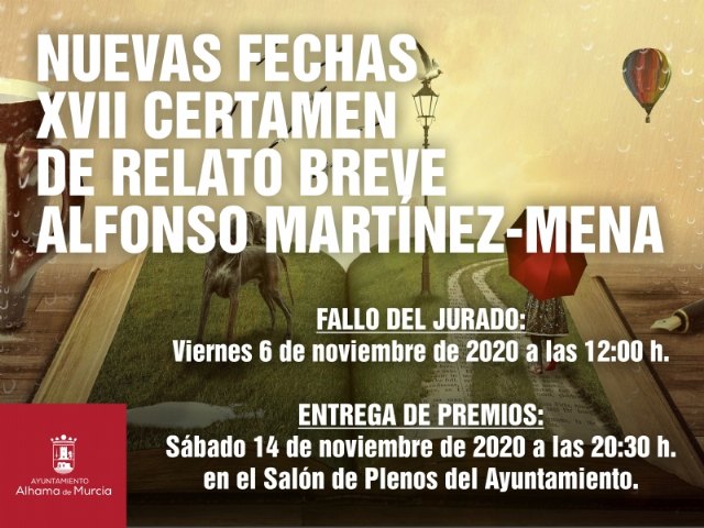 La situación derivada de la pandemia de Covid-19 y su expansión en nuestra Región, ha obligado a modificar los plazos previstos para la realización del certamen literario de relato breve de Alhama de Murcia.
