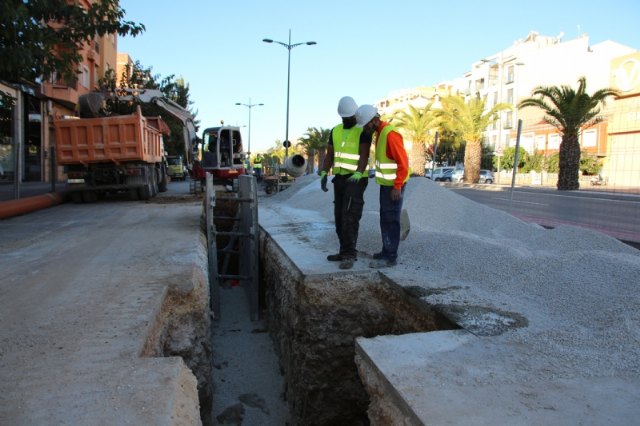 El Ayuntamiento de Alhama de Murcia, a través de la empresa concesionaria del servicio de aguas, Socamex, está renovando un tramo de tuberías en la avenida Ginés Campos, entre la calle Isla Samar y la avenida Bastarreche, a la altura del hotel situado en esta zona.