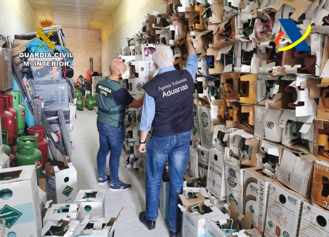 La Guardia Civil de la Región de Murcia y Vigilancia Aduanera de la Agencia Tributaria en Murcia han desarrollado la operación 'Fluoris', una investigación dirigida a esclarecer el supuesto tráfico ilegal de gases fluorados por una empresa de Alhama de Murcia, que ha culminado con la desarticulación de una organización criminal presuntamente dedicada a la comercialización fraudulenta de envases y gases fluorados prohibidos por la Unión Europea.