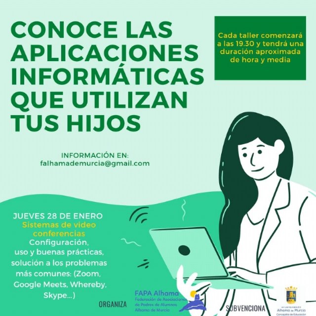 La Federación de Asociaciones de Padres de Alumnos (FAPA) de Alhama de Murcia pone en marcha la Escuela de Padres 2021, subvencionada por el Ayuntamiento de Alhama de Murcia. El objetivo de estos talleres es informar y formar a las familias, a través de charlas y talleres de diversas temáticas, sobre el complejo mundo de la educación de los hijos, proporcionando herramientas y pautas que, aplicándolas a la práctica diaria, facilite la solución de los problemas que se puedan plantear en el día a día.