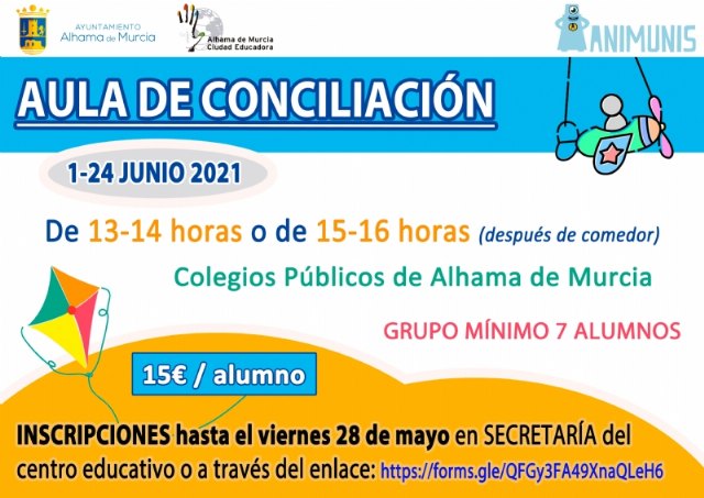 La concejalía de Educación informa de la apertura del plazo de inscripción al aula de conciliación, un servicio que se prestará del 1 al 24 de junio en el colegio que solicite, y que tiene como objetivo la conciliación de la vida laboral y familiar.