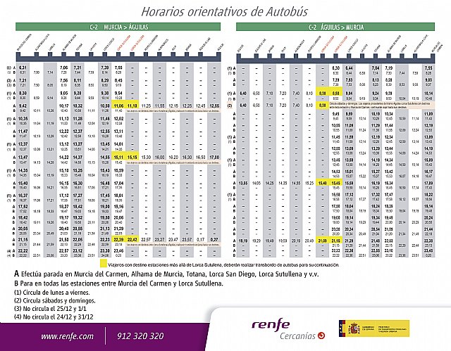 Horarios del servicio alternativo de autobús línea Murcia-Águilas por las obras de ADIF