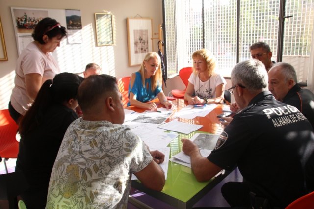 La alcaldesa de Alhama, Mariola Guevara, ha presidido hoy jueves una reunión, previa a las fiestas patronales, entre los diferentes servicios municipales para coordinar el operativo logístico y de seguridad.