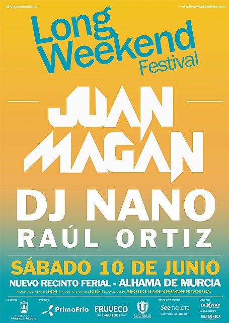 Esta primera edición cuenta, además, con el patrocinio de importantes empresas como Primafrio, Fruveco y Universae, demostrando la importancia del sector privado en el impulso de la actividad económica y cultural, siendo su papel fundamental para el desarrollo de ambiciosas propuestas como este Long Weekend Festival.