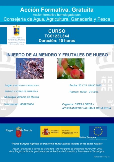 La concejalía de Empleo y Desarrollo Local informa de la realización de una nueva acción formativa gratuita homologada sobre 'Injerto de almendro y frutales de hueso'.