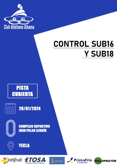Este próximo domingo 28, el 'Complejo Deportivo Jan Palao Azoín', acoge la 'Control Sub16 y Sub18', organizado por la ADA Yeclano Atletismo, la Federación de Atletismo de la Región de Murcia y el Ayuntamiento de Yecla..