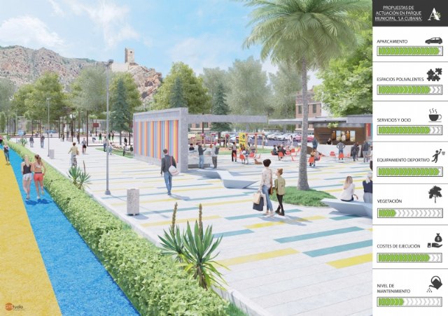 La opción más votada ha sido la A que engloba la construcción de un parque polivalente, con el que se respetará la vegetación existente y en el que se podrán compaginar la realización de eventos con las plazas de estacionamiento.