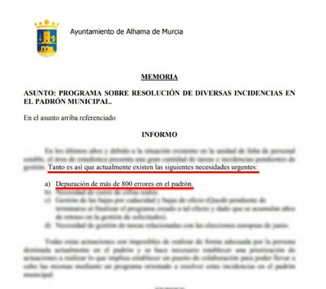 Estos días hemos conocido un informe interno del Ayuntamiento en el que señala que el Padrón municipal en el que se basa la votación de La Cubana contiene más de 800 errores. Esto significa que cualquier persona que conozca los datos de vecinos/as que ya no viven en Alhama o que han fallecido, puede votar por ellos. Por tanto, solo por este hecho, los resultados no son representativos y están completamente adulterados, tanto en la primera fase como en esta segunda.
