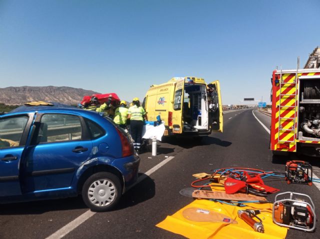 Segundo accidente: trasladan a dos mujeres heridas de 25 y 30 años de edad al H. Clínico Universitario Virgen de la Arrixaca de Murcia, policontusionadas.