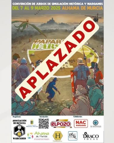 El Ayuntamiento de Alhama se ve en la necesidad de aplazar las II Paparajote Wars, jornadas de juegos de simulación histórica y wargames previstas para este fin de semana.