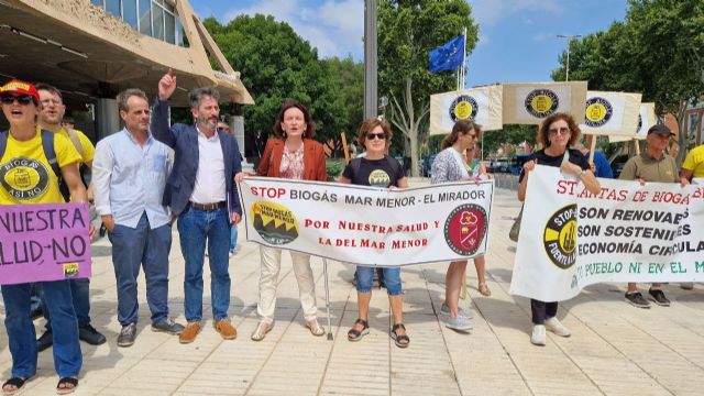 Podemos ha acompañado este mediodía a las decenas de miembros de plataformas municipales contra el biogás que se han concentrado a las puertas de la Asamblea. Allí, en el Pleno, se debatía la moción consensuada con las plataformas que la formación morada presentaba para "defender a los vecinos de la Región de Murcia de la instalación de grandes plantas de biogás al lado de sus casas y negocios". Así lo expresaba la diputada María Marín, que, tras ser tumbada la moción, afirmaba que se han "vuelto a encontrar con el muro de Partido Popular y Vox, que sirven a sus amos, que son las grandes corporaciones y los fondos de inversión de las energéteicas, normalmente de capital extranjero, en vez de defender el medio ambiente y la salud de sus vecinos y vecinas".