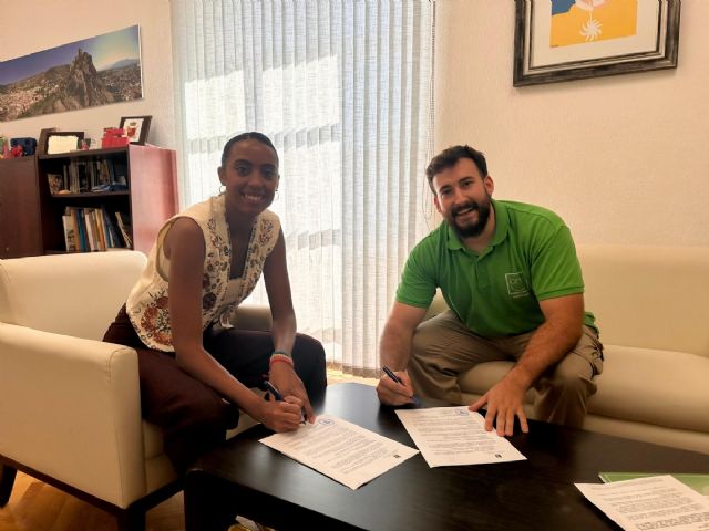 La alcaldesa Rosa Sánchez y el presidente de la Asociación Peña “Sal Tocando” de Alhama de Murcia, Antonio Romero, han suscrito un convenio de colaboración para la organización del I Torneo de Basket 3x3 benéfico “Sal Botando”.