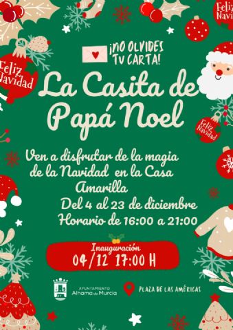 La mágica visita a La Casita de Papá Noel dará comienzo el jueves 4 de diciembre a las 17:00 horas, en la Casa Amarilla, y se desarrollará hasta el día 23, en horario de 16:00 a 21:00 h.