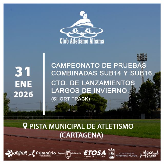 Este próximo sábado, la 'Pista Municipal de Atletismo de Cartagena' acogerá el 'Campeonato de Pruebas Combinadas sub14 y Sub16 - Cto. de Lanzamientos Largos de Invierno', organizado por el UCAM Atletismo Cartagena, la Federación de Atletismo de la Región de Murcia y el Ayuntamiento de Cartagena.