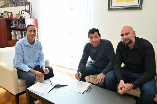 La alcaldesa, Rosa Sánchez, el concejal de Deportes, Toni Sibina, y el presidente de la Federación de Atletismo de la Región de Murcia, Antonio Jesús Bermúdez, han firmado hoy el convenio que regula la utilización de infraestructuras deportivas locales para entrenamientos, cursos de tecnificación y competiciones oficiales.